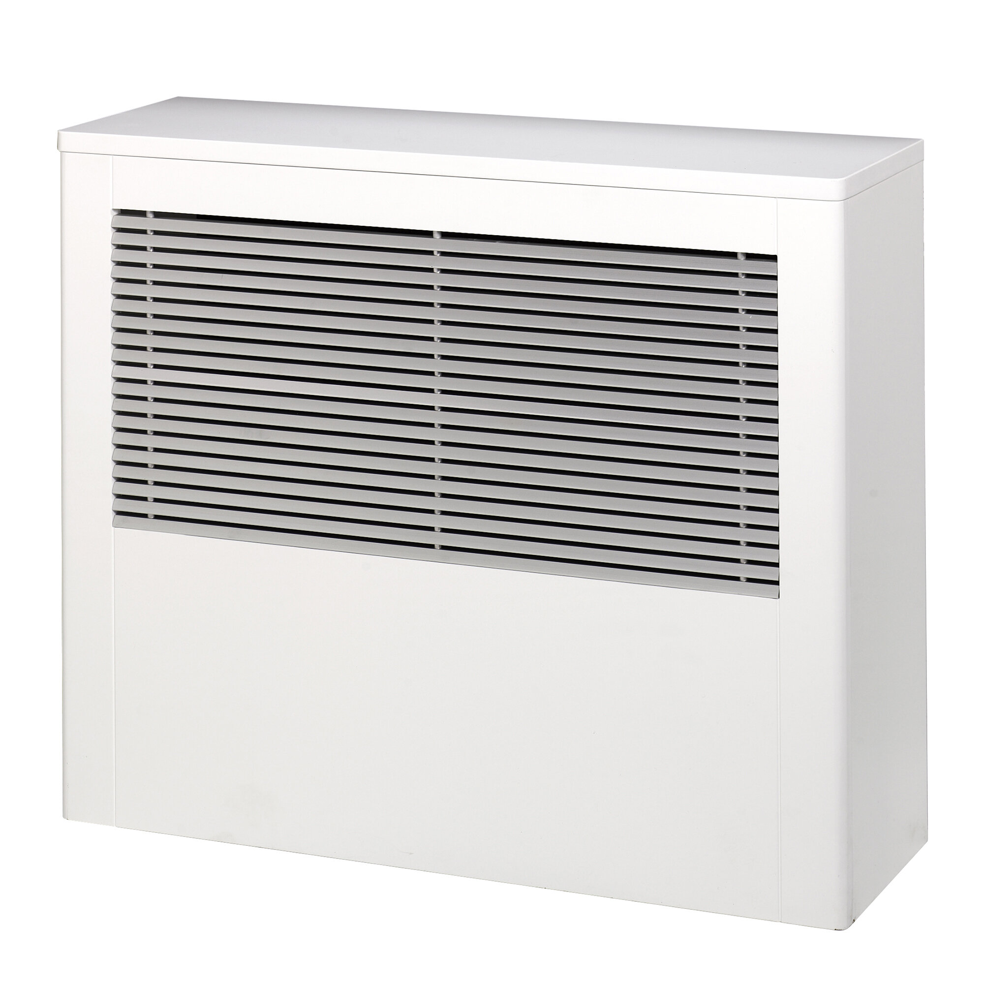 Neutral air dehumidifier with cabinet for vertical wall-mounted installation.
